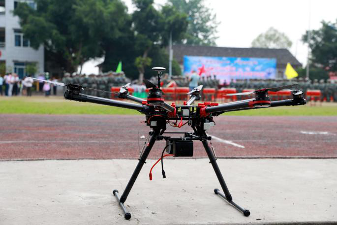 (無人機調試好后,等待著起飛)