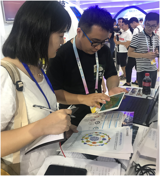 今天是開幕式,也是專業觀眾觀展的第一天,樂教集團就已經吸引了不少相關企業的興趣和關注,我們的負責人也接受了大批媒體的參訪,展臺前圍滿了人。