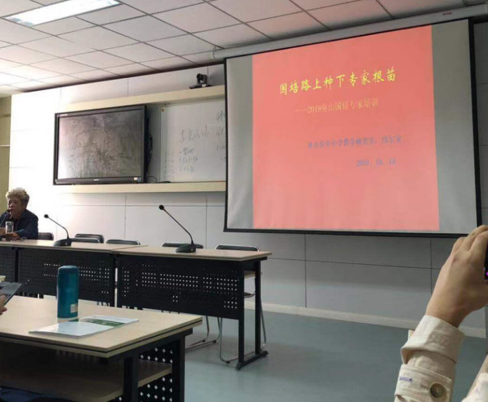 典禮結束后,教委中小學教研室主任鄺爾安給全體專家成員進行了《國培路上種下專家根苗》的專題講座。